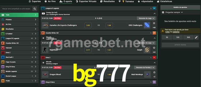 A aposta bg777 oferece aos jogadores a experiência mais conveniente de apostas em eSports!